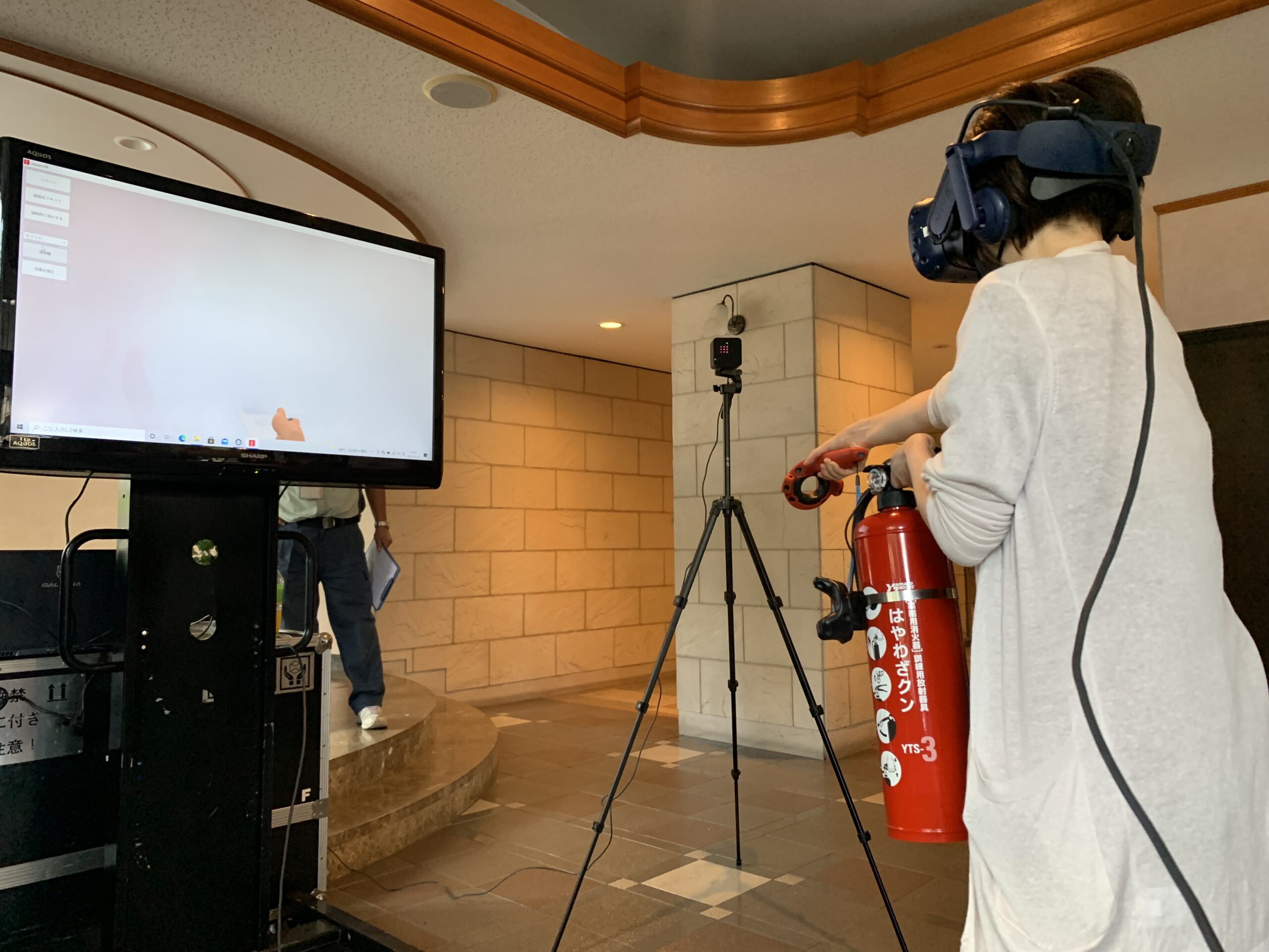 コントローラーを使い、VR内で、実際に初期消火を体験することができます。