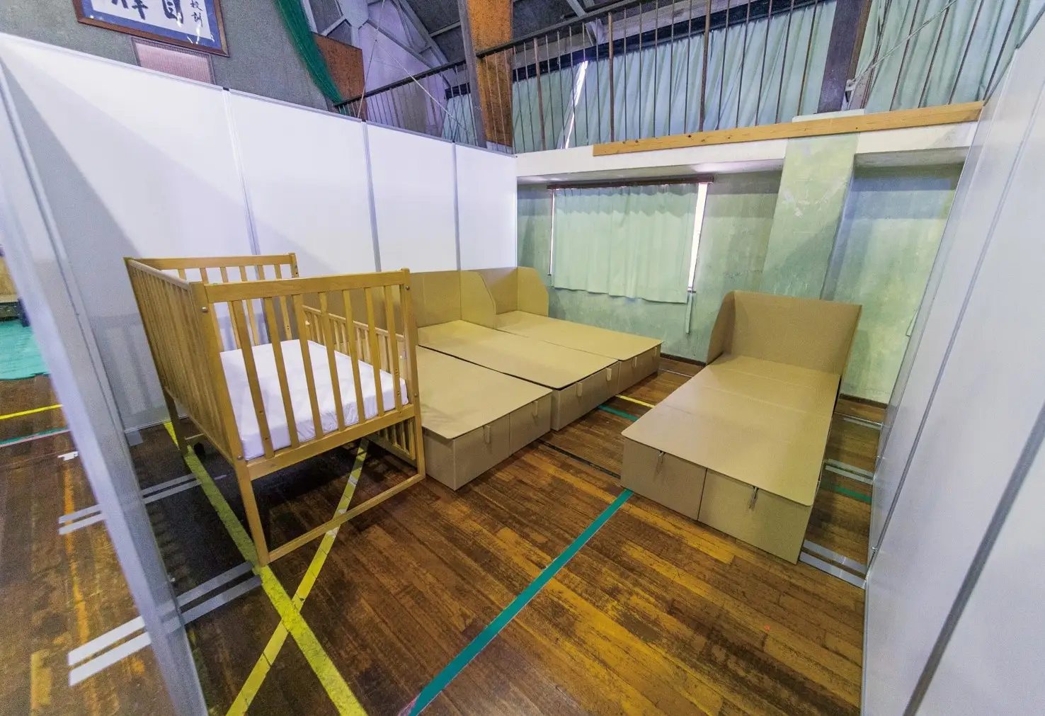 VR機器を活用した、消火訓練体験や、実際の避難所で使用されている段ボールベッドを展示します。